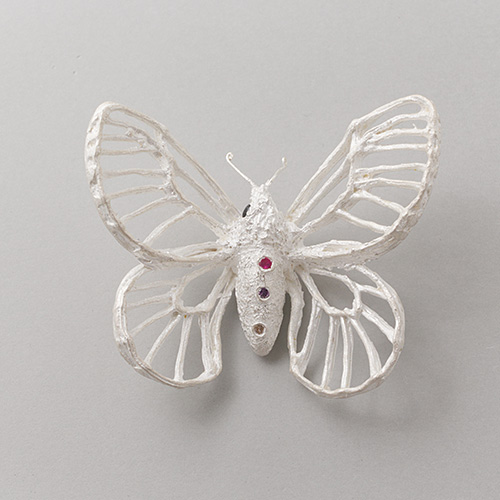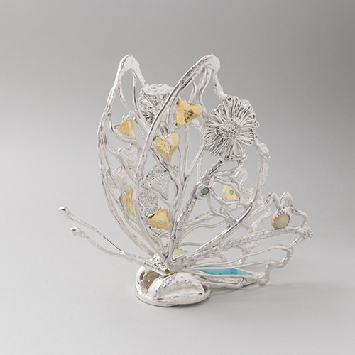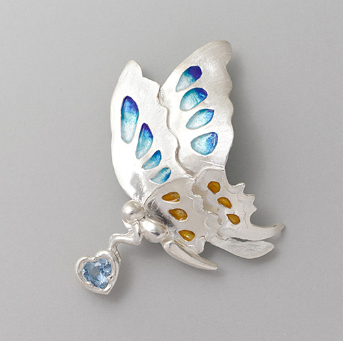 出会うと幸運をもたらすという幻の蝶を求めて。薄く伸ばせるMorinで七宝と合わせても軽い仕上がりです。